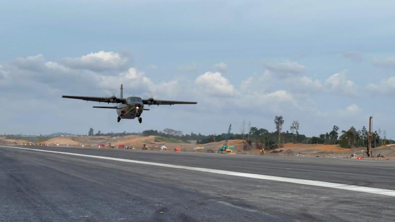 Sebelumnya TNI Angkatan Udara telah melakukan sederet uji coba terbang dan mendarat sudah dilakukan di Bandara IKN untuk melihat keamanan penerbangannya.