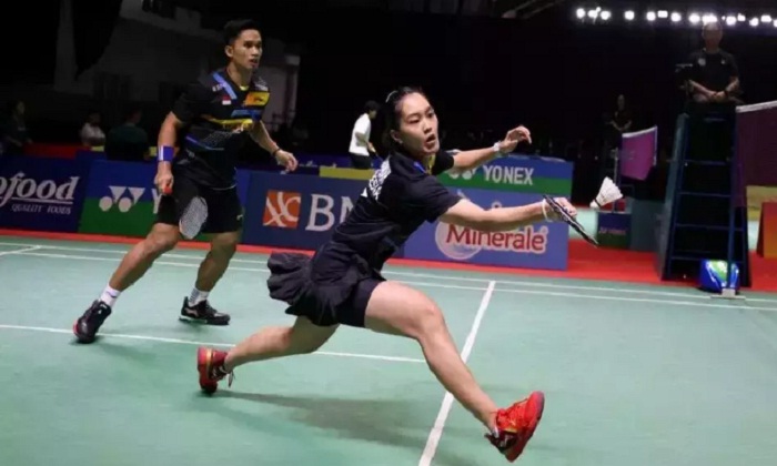 Pada pertandingan yang berlangsung di Jatim Expo, Surabaya, Rabu (23/10), ganda campuran peringkat 120 dunia itu sukses mengakhiri laga dengan skor 21-13, 21-12.