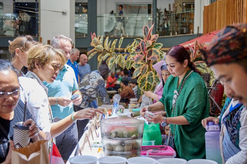 Dalam kegiatan ini, stan (booth) Indonesia menyuguhkan masakan autentik nusantara yang sangat disukai oleh para pengunjung seperti sate ayam, nasi goreng, siomay, bakso dan mie ayam, serta kudapan ringan antara lain lemper, dadar gulung dan risol. Tak luput minuman es cendol, dan produk minuman RI UC1000 rasa lemon dan jeruk, juga menjadi rebutan para pengunjung yang menggemari minuman tersebut untuk menyegarkan diri di hari yang cerah.