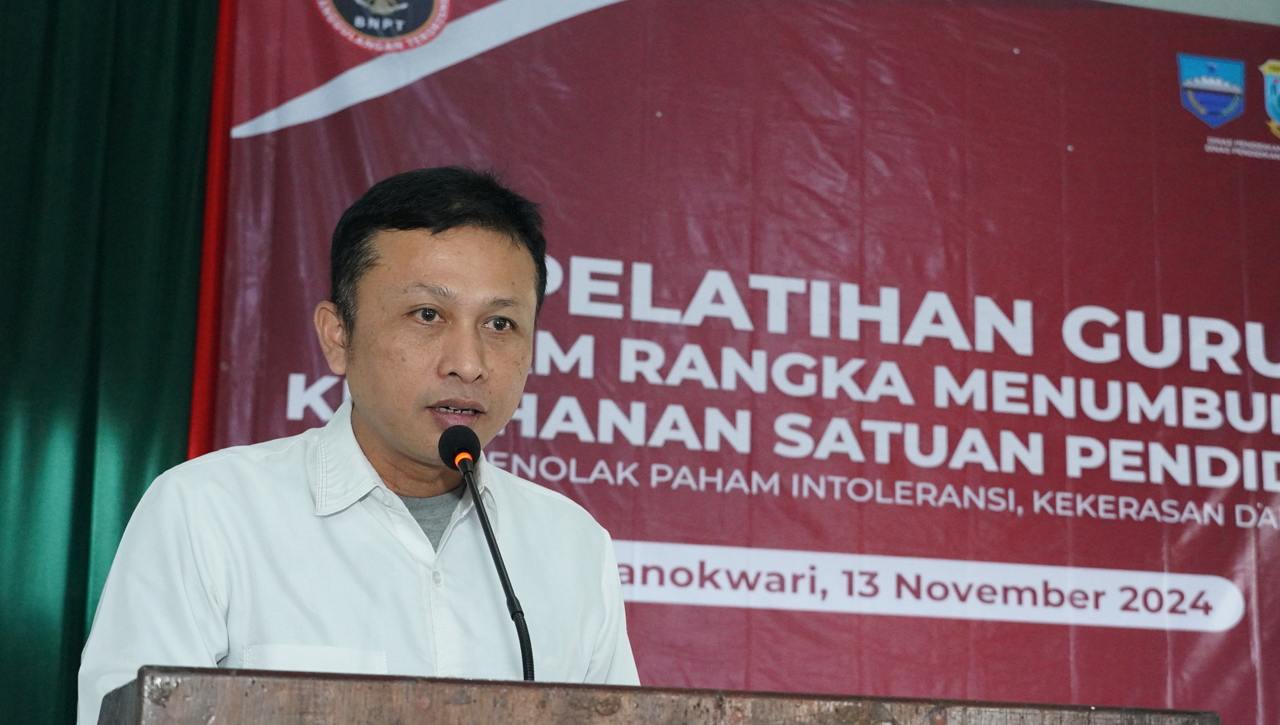 Acara yang merupakan hari pertama dari bagian Program Sekolah Damai BNPT ini berlangsung di Aula SMK Negeri 2, Manokwari, Papua Barat, Rabu (13/11/2024) yang dihadiri hampir 100 guru SMA/SMK sederajat yang ada di Papua Barat.