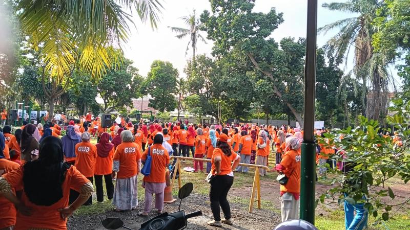 Ratusan pendukung dari perwakilan Alumni SMA Jakarta Menyala, tim relawan dan masyarakat sekitar membaur senam bareng bersama Chicha Koeswoyo dan menyanyikan lagu lagu mendukung calon Gubernur DKI Mas Pram dan wakil gubernur Bang Doel