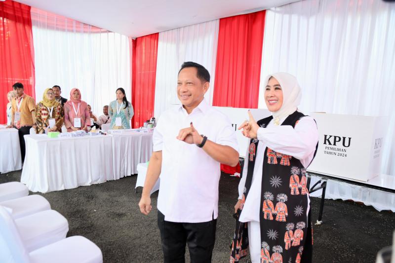 Jakarta, INDONEWS.ID - Menteri Dalam Negeri (Mendagri) Muhammad Tito Karnavian bersama istri Tri Tito Karnavian menggunakan hak pilih dalam Pemilihan Kepala Daerah (Pilkada) Serentak 2024.