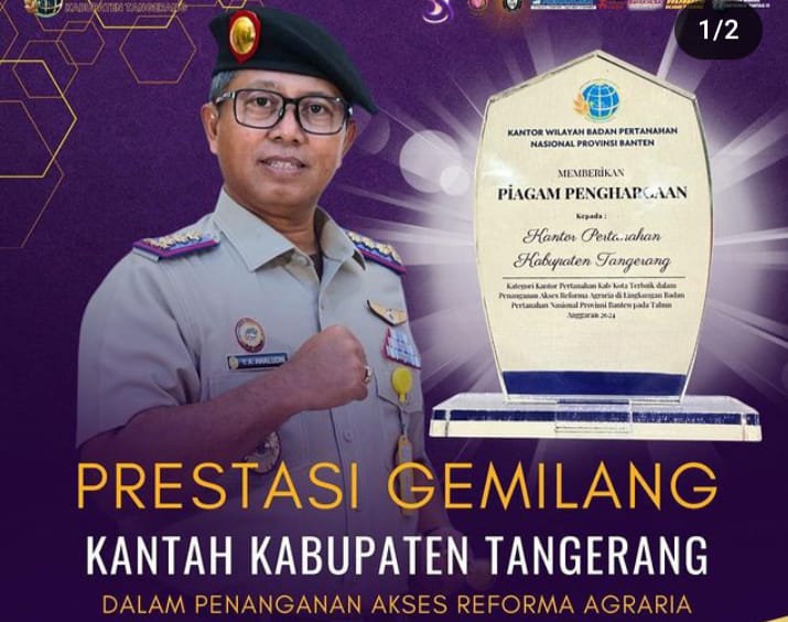 Jakarta, INDONEWS.ID - Kantor Wilayah Badan Pertanahan Nasional Provinsi Banten memberikan penghargaan kepada Kantor Pertanahan Kabupaten Tangerang sebagai Kantor Pertanahan Kabupaten/Kota Terbaik dalam Penanganan Akses Reforma Agraria di Lingkungan Badan Pertanahan Nasional Provinsi Banten pada Tahun Anggaran 2024.