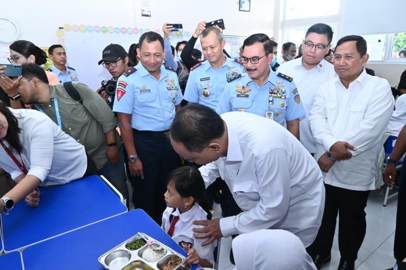 Jakarta, INDONEWS.ID - Pangkoops Udara I Marsda TNI Mohammad Nurdin turut dampingi Menteri Koperasi Indonesia Budi Arie Setiadi dalam meninjau Satuan Pelayanan Pemenuhan Gizi (SPPG) di area Lanud HLM serta memantau langsung pembagian paket Makan Bergizi Gratis ke sejumlah sekolah di sekitar markas Lanud Halim Perdanakusuma, khususnya membagikan MBG tersebut ke SDS Angkasa 5 Lanud Halim Perdanakusuma. (Senin, 6-1-2025).