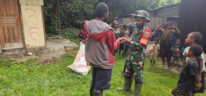 Tingginambut, INDONEWS.ID - Pastikan kondisi wilayah binaan aman, jelang putusan Makamah Konstutusi terkait Pilkada Kabupaten Puncak Jaya, Babinsa Pos ramil 1714-06/ Tingginambut Serda Yakob Imbiri melaksanakan Komunikasi Sosial (Komsos) bersama warga Kp. Ginilome , Distrik Tingginambut, Kab. Puncak Jaya, Rabu (08/01/2025).