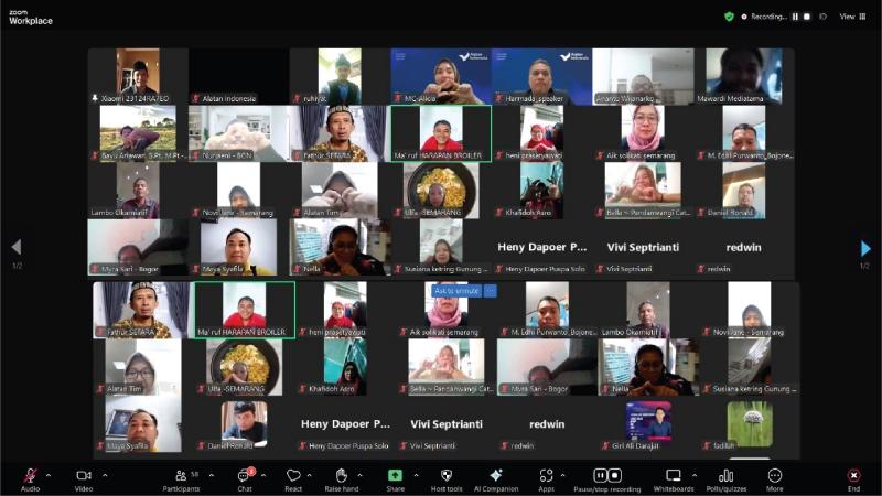 Acara tersebut menghadirkan Direktur Sistem Pemenuhan Gizi Nasional BGN, Dr. Nurjaeni, SSi., MSR, dan pakar kebijakan publik, Harmada Sibuea, M.Sc., M.H. Webinar ini diikuti oleh lebih dari 100 pelaku usaha nasional, terutama dari sektor kuliner seperti katering dan jasa boga.