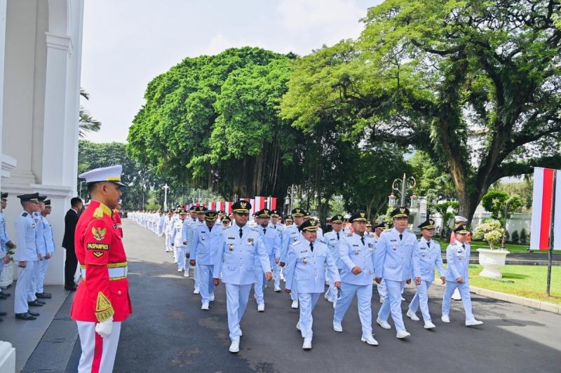Setibanya di halaman tengah Istana Kepresidenan, para kepala daerah langsung bersiap untuk mengikuti upacara pelantikan yang akan dipimpin langsung oleh Presiden Prabowo Subianto.