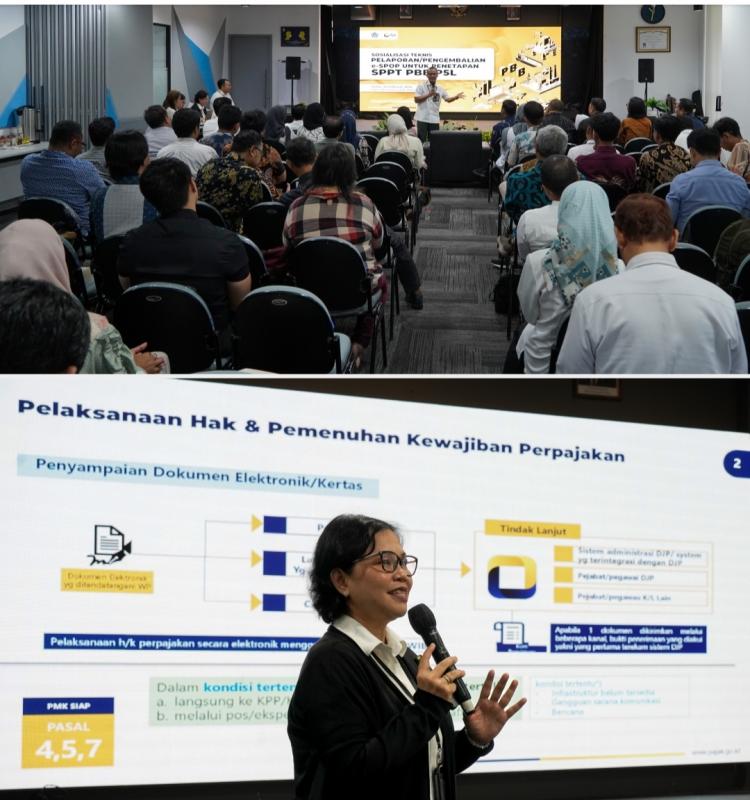 Sosialisasi Teknis Pelaporan/Pengembalian e-SPOP dengan menggunakan Aplikasi Coretax di Aula Lantai 2 Kanwil DJP Jakarta Selatan II. Peserta yang hadir sebanyak 36 orang yang merupakan wakil dari wajib pajak yang memiliki objek PBB P5L dari Sektor Perkebunan dan Sektor Pertambangan untuk Pengusahaan Panas Bumi.