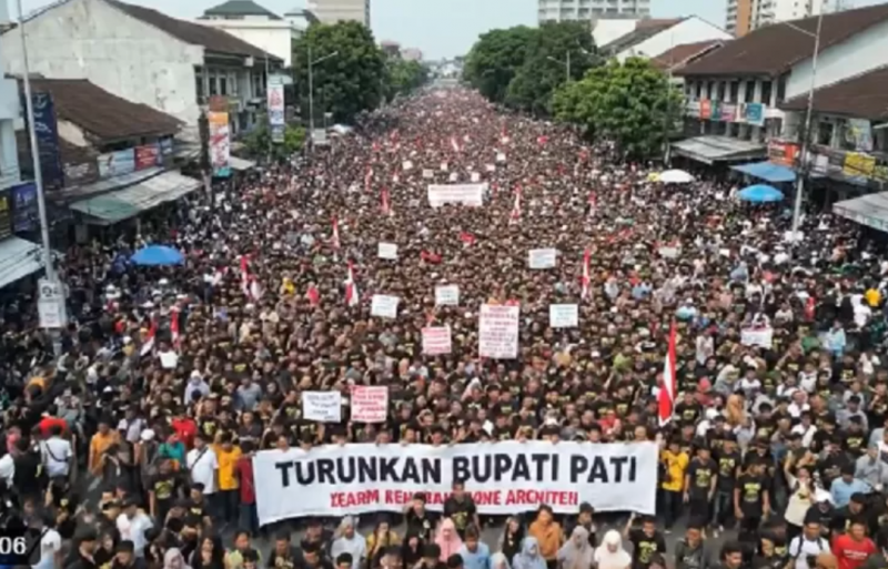Sebelumnya, ribuan warga yang tergabung dalam Aliansi Masyarakat Pati Bersatu menggelar demonstrasi besar di depan Kantor Bupati dan Pendapa Kabupaten Pati.