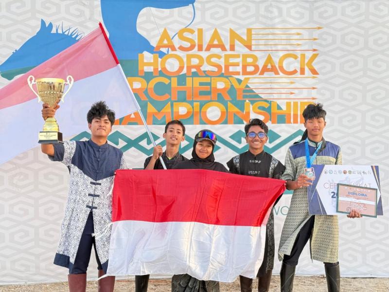 Aktau, INDONEWS.ID - Setelah melalui kompetisi sulit dan melelahkan Tim Indonesia Equestrian Archery (IEA), berhasil membawa Indonesia meraih peringkat 3 pada Youth Horseback Archery Asian Championships 2025 di Aktau, Kazakhstan pada 13 - 16 Agustus. Indonesia berada di bawah Tukiye peringkat 2 dan Kazakhstan tuan rumah peringkat 1.