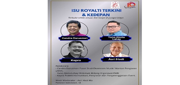 Maka dari itu, menurut Asri, penting dilakukan diskusi agar masyarakat mengetahui duduk persoalan royalti ini. "Karena ada polemik di masyarakat tentang banyak tempat diminta bayar royalti, maka indonews.id ambil inisiatif untuk membahas tentang royalti itu," kata Asri, Selasa (19/8).