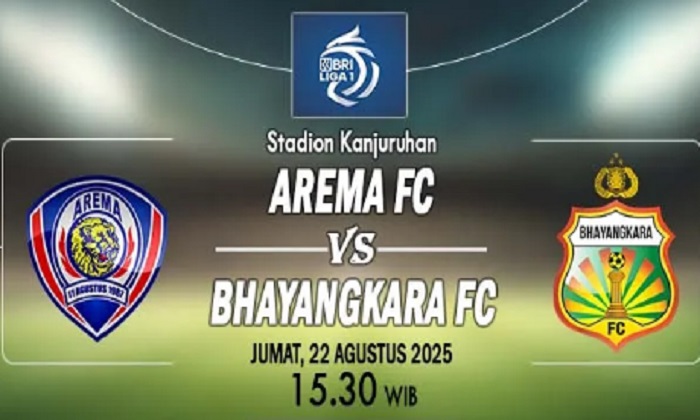 Jakarta, INDONEWS.ID-Duel seru Arema FC kontra Bhayangkara FC tersaji di Stadion Kanjuruhan, Jumat (22/8/2025) pukul 15.30 WIB.