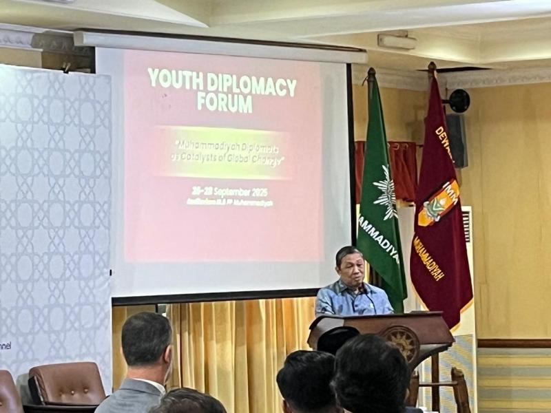 Jakarta, INDONEWS.ID -Wakil Menteri Luar Negeri (Wamenlu) RI Anis Matta berbagai perspektif tentang diplomasi dan tantangannya ke depan di forum "Youth Diplomacy: Muhammadiyah Diplomats as Catalyst of Global Change", yang digelar Ikatan Mahasiswa Muhammadiyah (IMM), di Kantor PP Muhammadiyah, Jakarta, Jumat (26/9/2025).