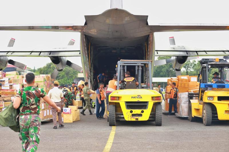 Jakarta, INDONEWS.ID – TNI Angkatan Udara menyalurkan lebih dari 400 ton bantuan kemanusiaan bagi masyarakat terdampak banjir di Sumatera Utara, Sumatera Barat, dan Aceh. Pengiriman bantuan dilakukan secara bertahap dari Lanud Halim Perdanakusuma sejak 27 November hingga 9 Desember 2025.